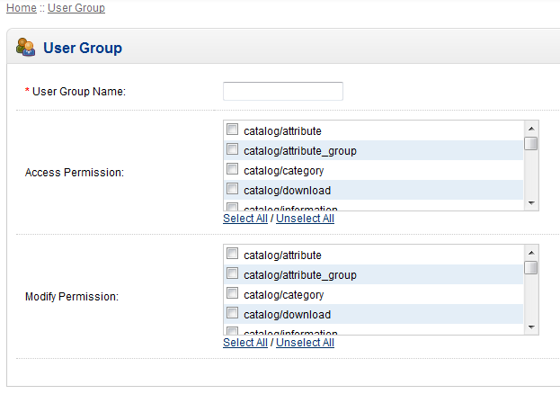 Adding user groups allows you to make multi-role groups that have different purposes when accessing your OpenCart store. The main effect you will see is where some users will have access to a certain location such as the product catalog, but not be able to make changes to the users. Take care when creating the groups so that you are providing appropriate permissions for the different roles you create so that they can accomplish their assigned jobs.