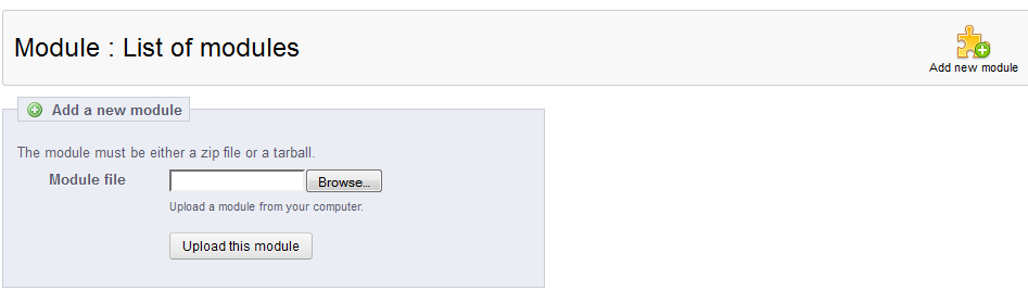 - At the top of the screen look and then click on ADD NEW MODULE. You will see the following: