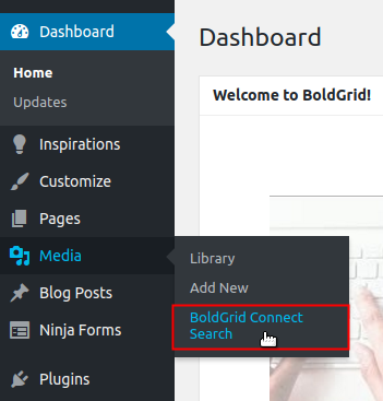 Hover over Media in the menu to left. Then, click on BoldGrid Connect Search