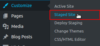 Hover over Customize from the menu on the left, then click on Staged Site. This will open the Customizer tool to begin modifying your Staging Site.