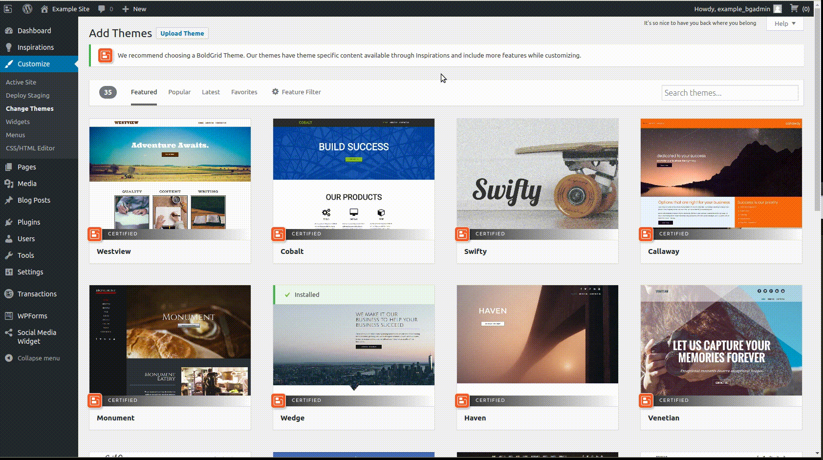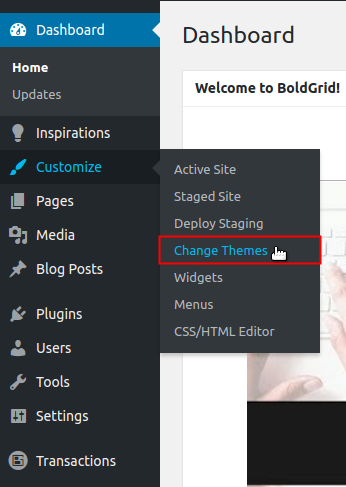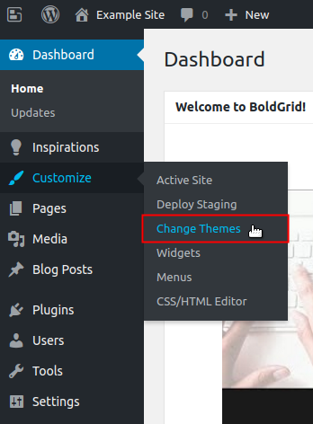 Alternatively, if you want to keep your content and change just your theme, BoldGrid allows you the ability to do this via the Change Themes option. The instructions below will provide the steps to change BoldGrid themes for your active and staging sites.