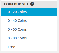 The final option for configuring content included with your Inspiration is the Coin Budget. Each Inspiration contains many stock photo images that may require purchase. The image content is purchased by using Copyright Coins. Consider and then choose your Coin Budget by clicking on the option under Coin Budget.