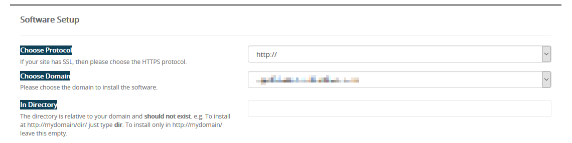 | In Directory | If you want to install BoldGrid into a subfolder and not the main domain, enter the folder name here. The folder cannot yet exist as it will be created upon installation. |