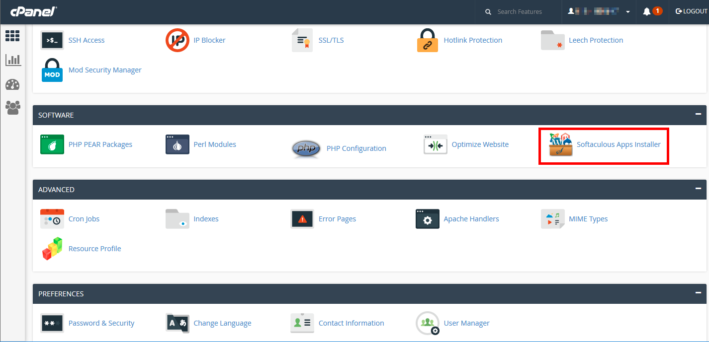 Find the Software category and click on the Softaculous Apps Installer icon.