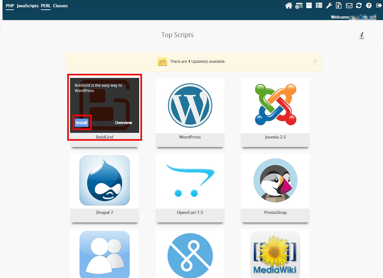 BoldGrid can be installed on either an existing WordPress installation, or within a new one. If you do not yet have WordPress installed, you can use these instructions to install BoldGrid along with WordPress in a single click install using the Softaculous tool.