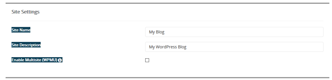 | Enable Multisite(WPMU) | Checking this box will enable multisite. Leave this box unchecked for BoldGrid. |