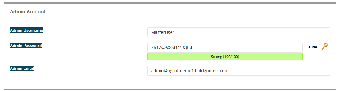 | Admin Email | Enter the email address you wish to use for the admin account. Make sure it is a valid email address so you can receive information from your site. |