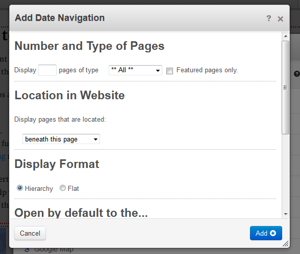 | Display format | Hierarchy will show years, months, then pages. Flat displays months then pages. |