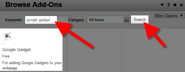 - In the Keyword field type 'google gadget' and click the Search button to the right.
