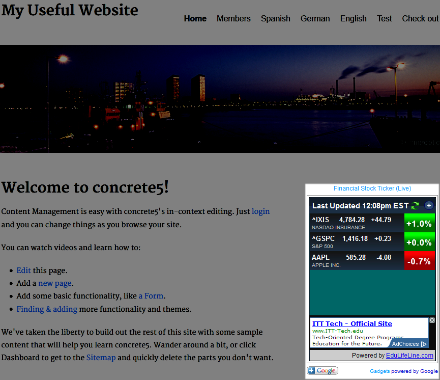 Congratulations, now you know how to work with the free Google Gadget add-on in Concrete5!