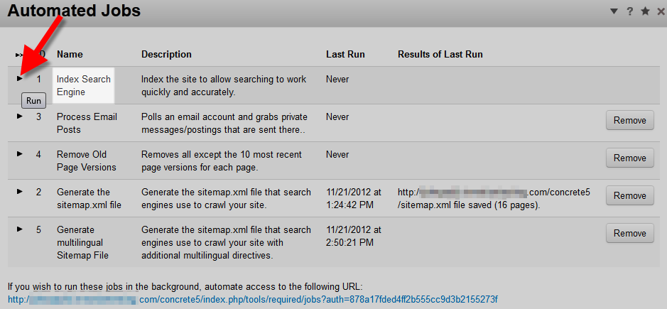 Congratulations, now you know how to Index your search engine from the Concrete5 Dashboard!