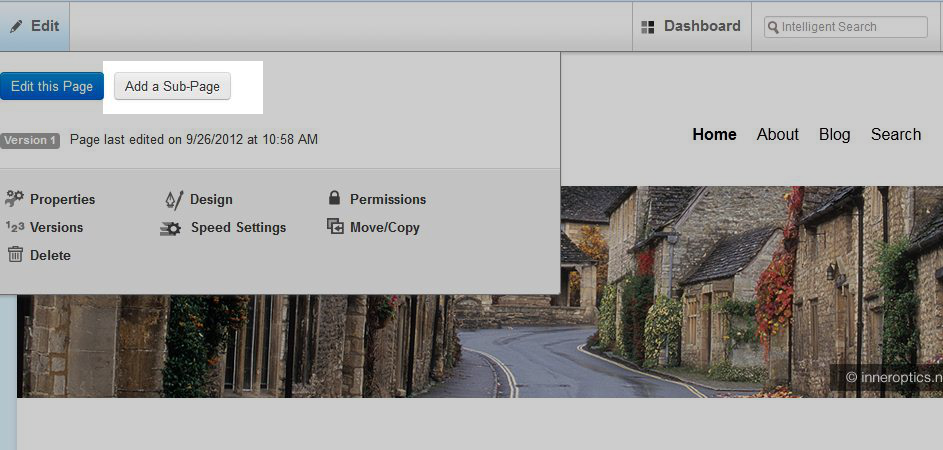- In the top left of the page, you will see an Edit button. Hover over the Edit button and then click Add a Sub-Page.