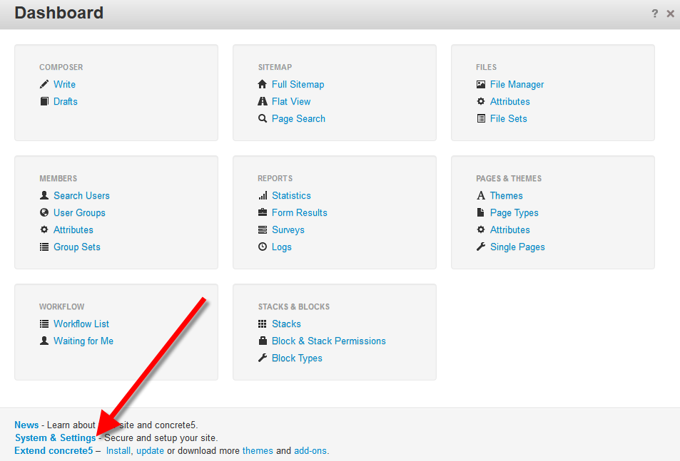 - Login to your Concrete5 website.
