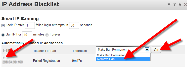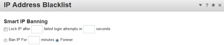 | Lock IP after | With this option you can set how many times an individual IP can try to login and fail within a certain amount of time (in seconds) before they are banned. |