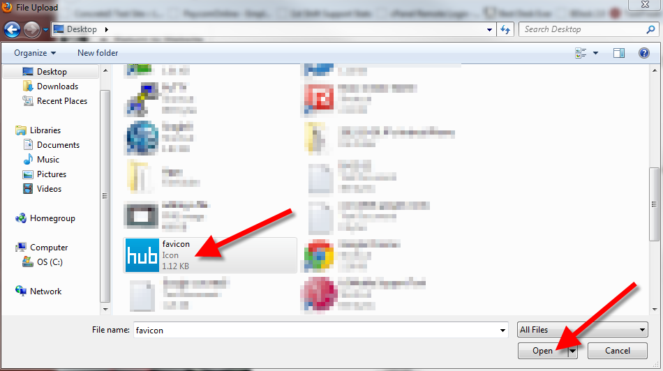 - Locate and select your iPhone thumbnail (Concrete5 specifies "iPhone home screen icons should be 57x57 and be in the .png format"), and click the Open button on the bottom.