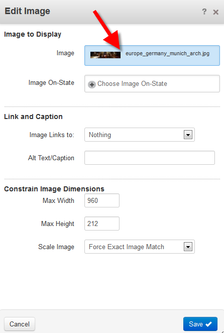 You can select an existing image from the list, click Choose, then the blue Save button.