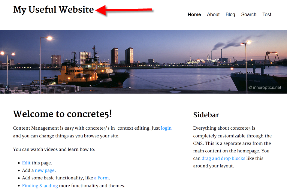 The previous guide in our working with themes in Concrete5 series covered changing a header image in Concrete5. In this tutorial we will show you how to create a sitewide Site Name in Concrete5. This is important since the header is sitewide and will be seen on every page on your website. Typically you will put something that generally represents your brand, or the services / products your website is offering.
