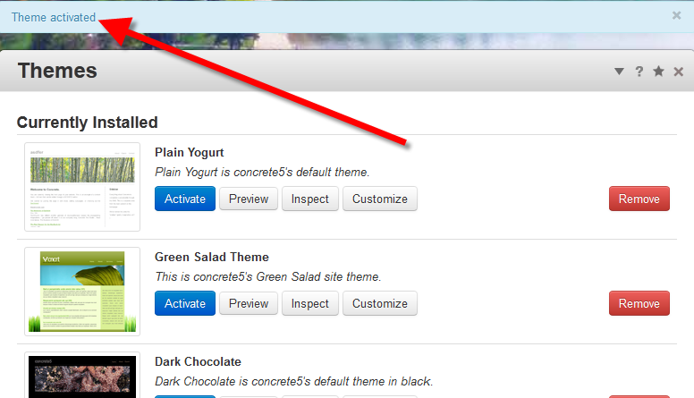 You willl receive a Theme activated confirmation message, this will complete your install.