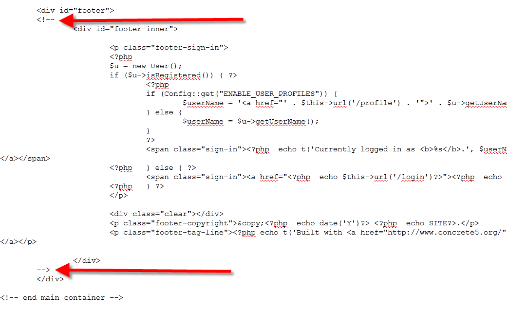 In this tutorial we will show you how to remove the Concrete5 sign in footer. By default it shows up on the footer of every page, which can throw off the style of your website.