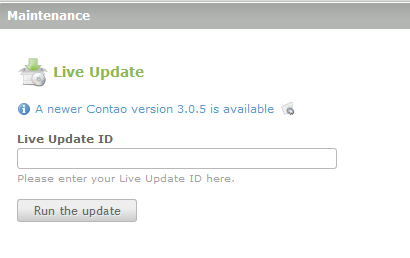 Contao is regularly maintained by the Contao non-profit organization and you can automatically upgrade your installation but you will need to have a Contao Live Update ID. This is a paid subscription service that you can obtain here. You also can update Contao manually, but you will need a file transfer program such as FileZilla. For more information on FileZilla, go to Using FileZilla to FTP to your Account. The following article explains how to update Contao using the FileZilla FTP client.