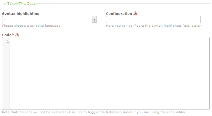 Syntax highlighting - the Contao interfaces a large variety of scripting languages that you can choose.