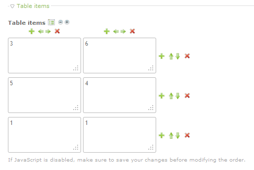 The table items section lets you manually create a table. Here's an example how it could look: