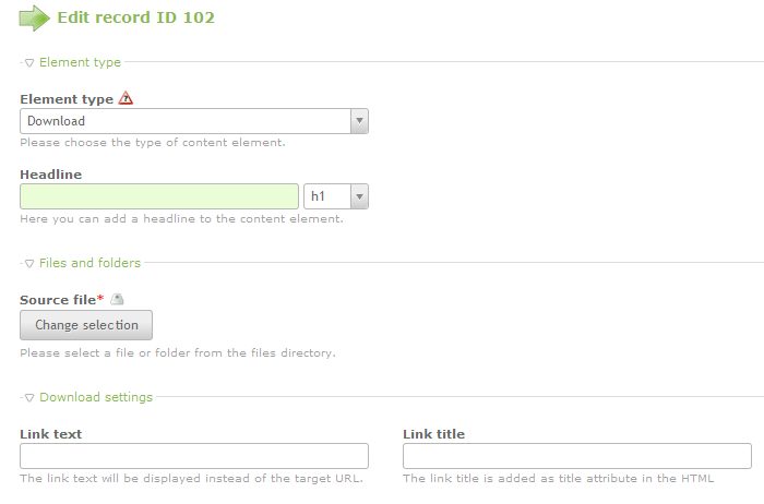 | Text | Top link | Gallery | Downloads | Content Element |