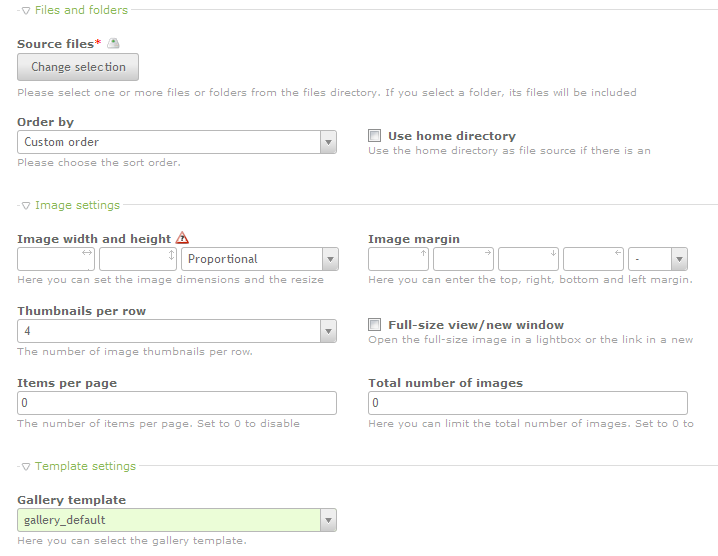 | Total number of images | allows you to set a limit on number of images; use 0 to disable the option |