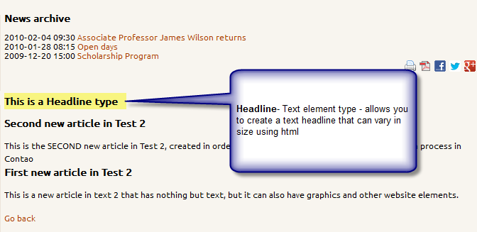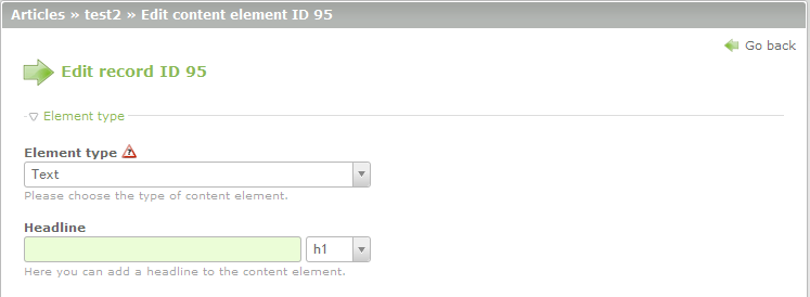 The following descriptions explain or show the different text elements that are available in the Contao CMS.
