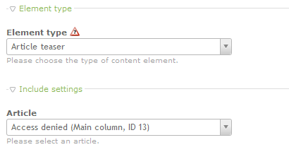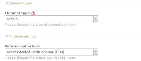 Article- include a specific article that may have been written in another section of the Contao CMS. Here's a screenshot that shows what you will see when selecting this option: