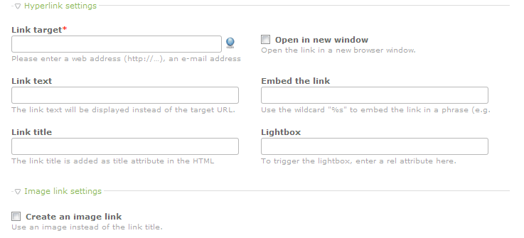 | Embed the link | Uses a wildcard "%s" to embed the link into a phrase. |