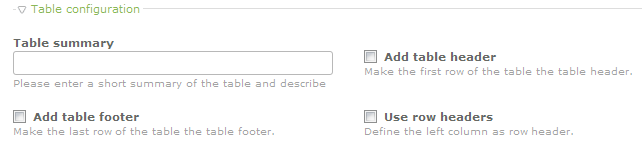 | Add table header | Adds a first row to the table for a header |