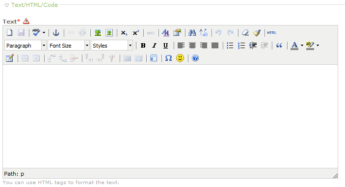 Text - allows you to add text to the element using the text editor as per the screenshot below: