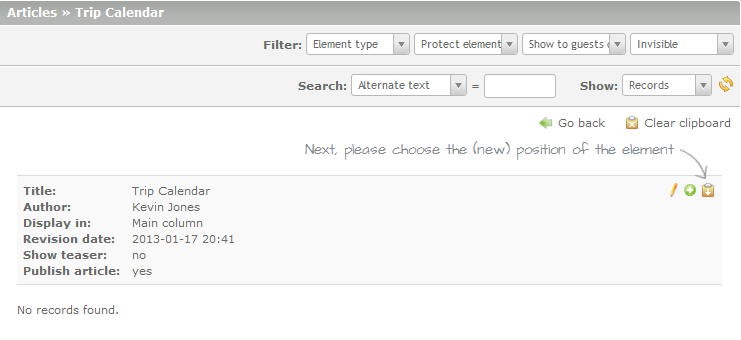 - When you see the Group Calendar Article appear, it will have the usual group of icons on the right. Click on the first icon to edit the article (click on the icon that resembles a pencil).