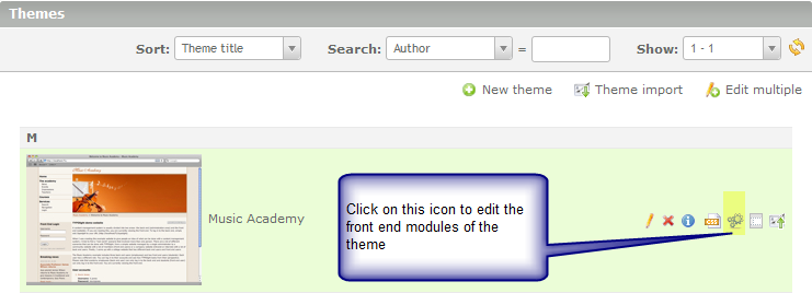 - In the Back End Modules along the left hand side, click on THEMES. If these steps are not completed you will NOT see your calendar appear.
