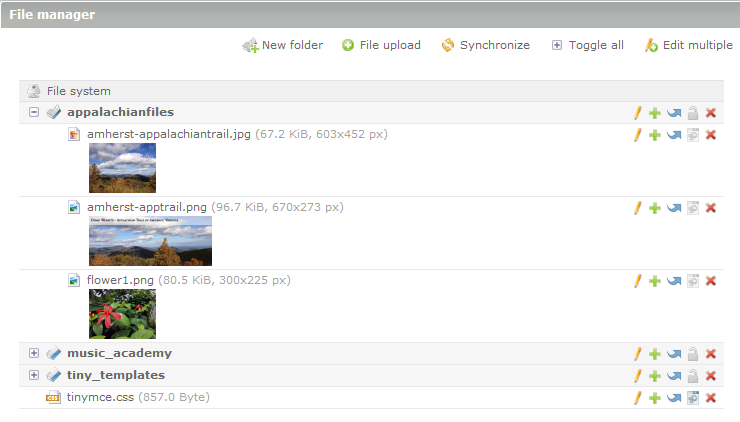 Files can be moved into Contao using a FTP client, a hosting service's interface program and the application built-in to Contao called File Manager. The file manager includes functions such as creating a new folder, synchronizing files and uploading files. The following article focuses on uploading files using the Contao system module called File Manager.