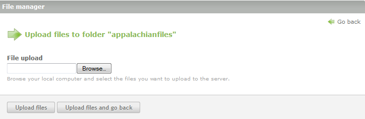 After you have selected the position where the file will be uploaded, you will see the Upload Files dialogue. Click on BROWSE in order to find the file tha that you wish to upload.