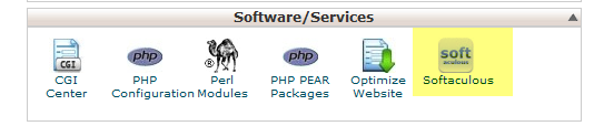 - Next, return back to the main Cpanel screen and then locate the Softaculous icon in the Software/Services section. Here's a quick screenshot of the section in the Cpanel: