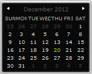 Clicking on the calendar icon allows you to designate the date simply by clicking on a date displayed in the calendar. You can cycle through the months by clicking on the left and right arrows beside the month label.