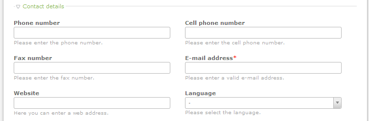 Contact Details include your phone number, cell phone number, fax number, email address (required), website, and language. Note tha the email address is required in order for the user entry to be saved. Fill in each field and then scroll down to the next section of the form - User Groups.