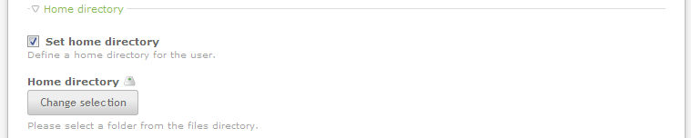 - The Set Home Directory section will appear as follows when the check box is NOT selected: