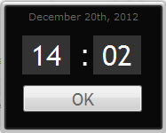 After clicking on the date in the calendar, you will next see a digital display of the time displayed in 24-hour format. Use your mouse in order to scroll through the times and select the one that meets your needs for your user or users. |