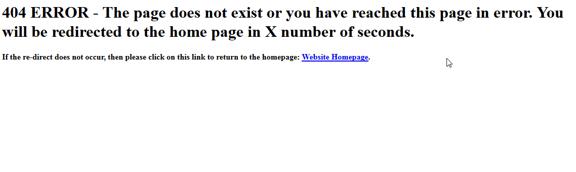 Test your custom 404 page - you can use a bad link or create one by simply adding a bad link after the primary domain in browser. You may need to change the time that the page will display. Make sure that you have provided a link that a customer can click on if they don't want to wait, or if the re-direct simply does not work.