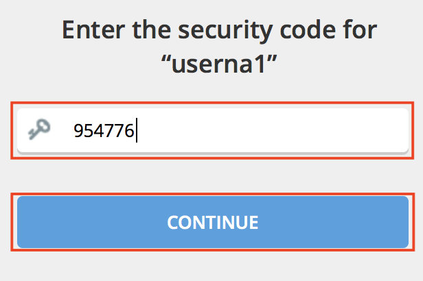Enter the security code in the field labeled: "Enter the security code for {your user}". Then, click the Continue button.