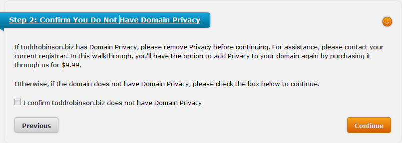 | Domain Privacy | Domain privacy prevents WHOIS queries from obtaining your contact information. This option can be added by clicking on Add if you want it for your domain, and costs $9.99 per domain. |