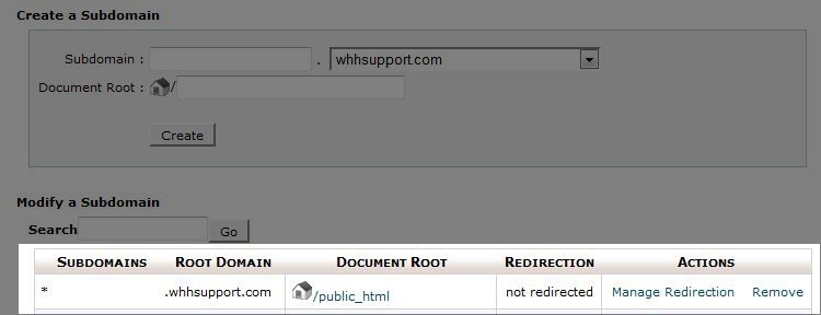 That is it! Your account is now set up for wildcard subdomains. Depending on the reason you've set up the Wildcard Subdomain, a .htaccess modification may be needed. Please read this article for information on updating your .htaccess file. If you set up the wildcard subdomain for WordPress MU, WordPress will update your .htaccess file automatically.