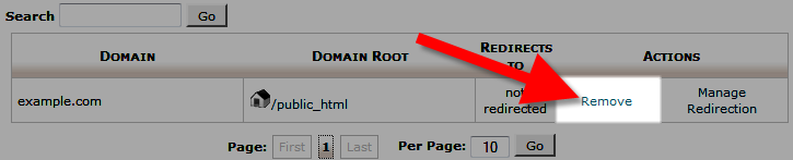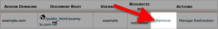 On the next page, you will see all your Addon domains listed. Click the Remove link beside the domain you want deleted.