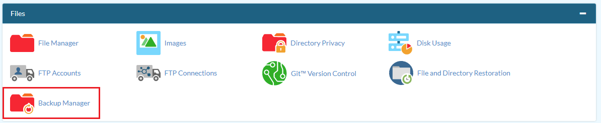 First, log into your cPanel and click on the Backup Manager under the Files sub-header: