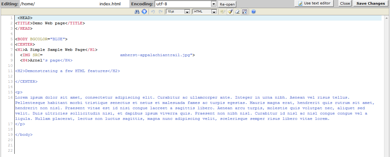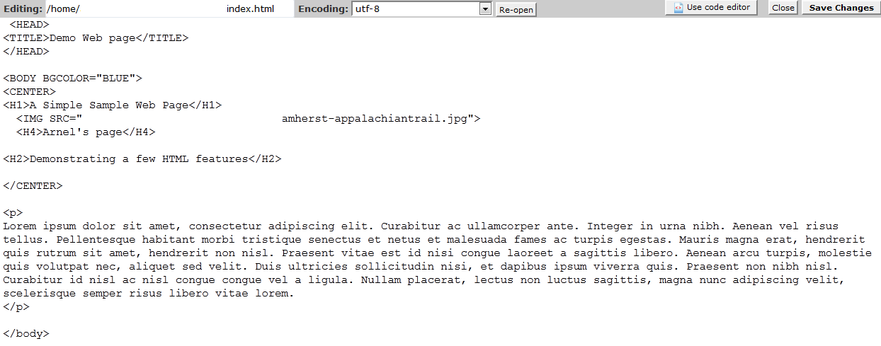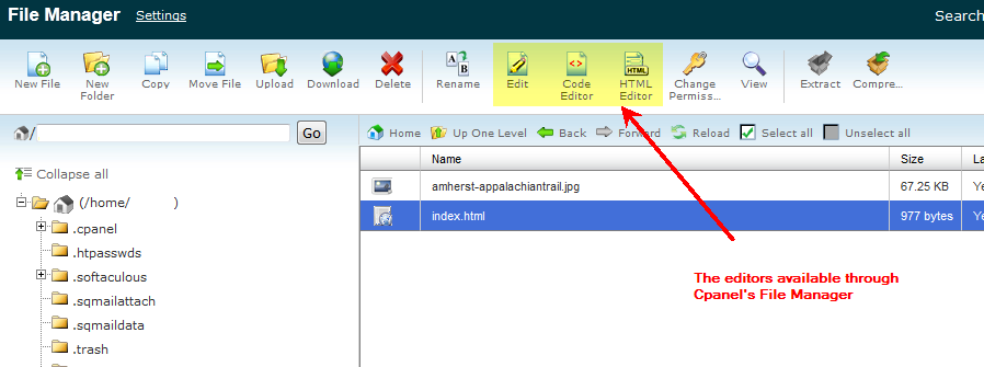 There are many ways to edit a file and we are only going to list a few of them. The process involves first obtaining the file, and then using your chosen program to edit the file. We will discuss editing a file using Cpanel File Manager's Editor and Code Editor. The following tutorial will walk you through the steps to complete this simple process. If you do not have access to the Cpanel File Manager, you can also use third party solutions such as Notepad ++ to edit the file. For further information go to Editing Files with Notepad++.