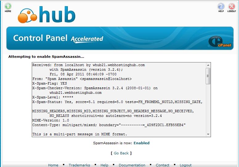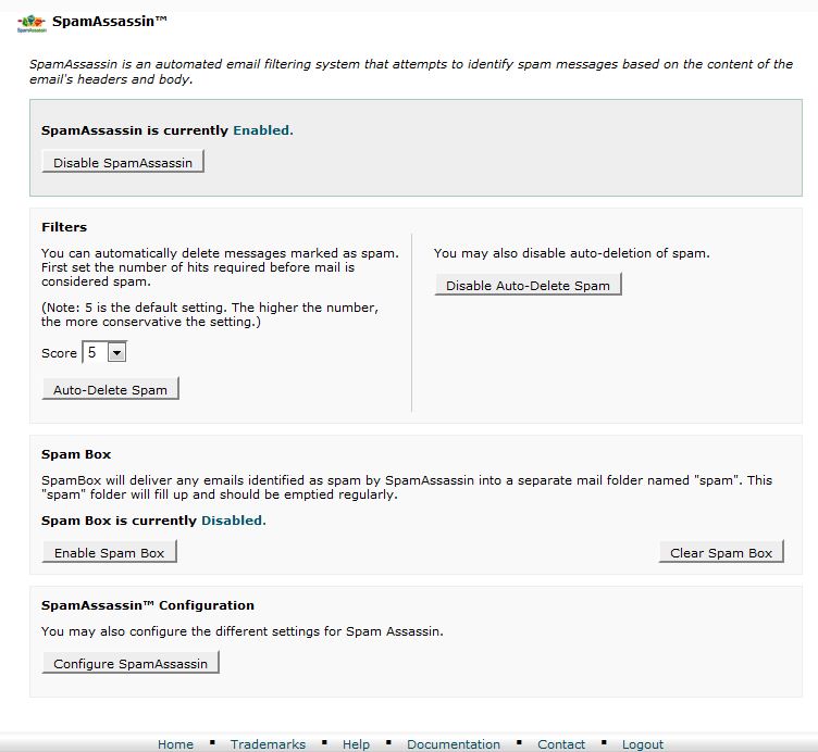 You can confirm that SpamAssassin is enabled by going back to the SpamAssassin page.